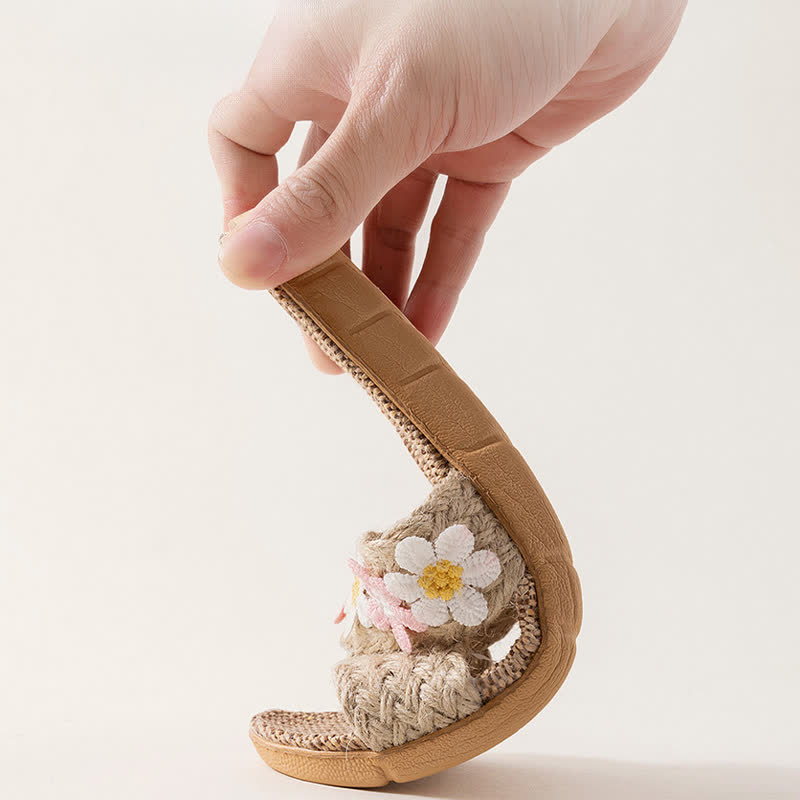 - Artisanal Cross-Band Design: The stylish criss-cross straps are crafted from durable linen and adorned with delicate daisy embroidery, offering a secure fit and a touch of cottagecore charm.