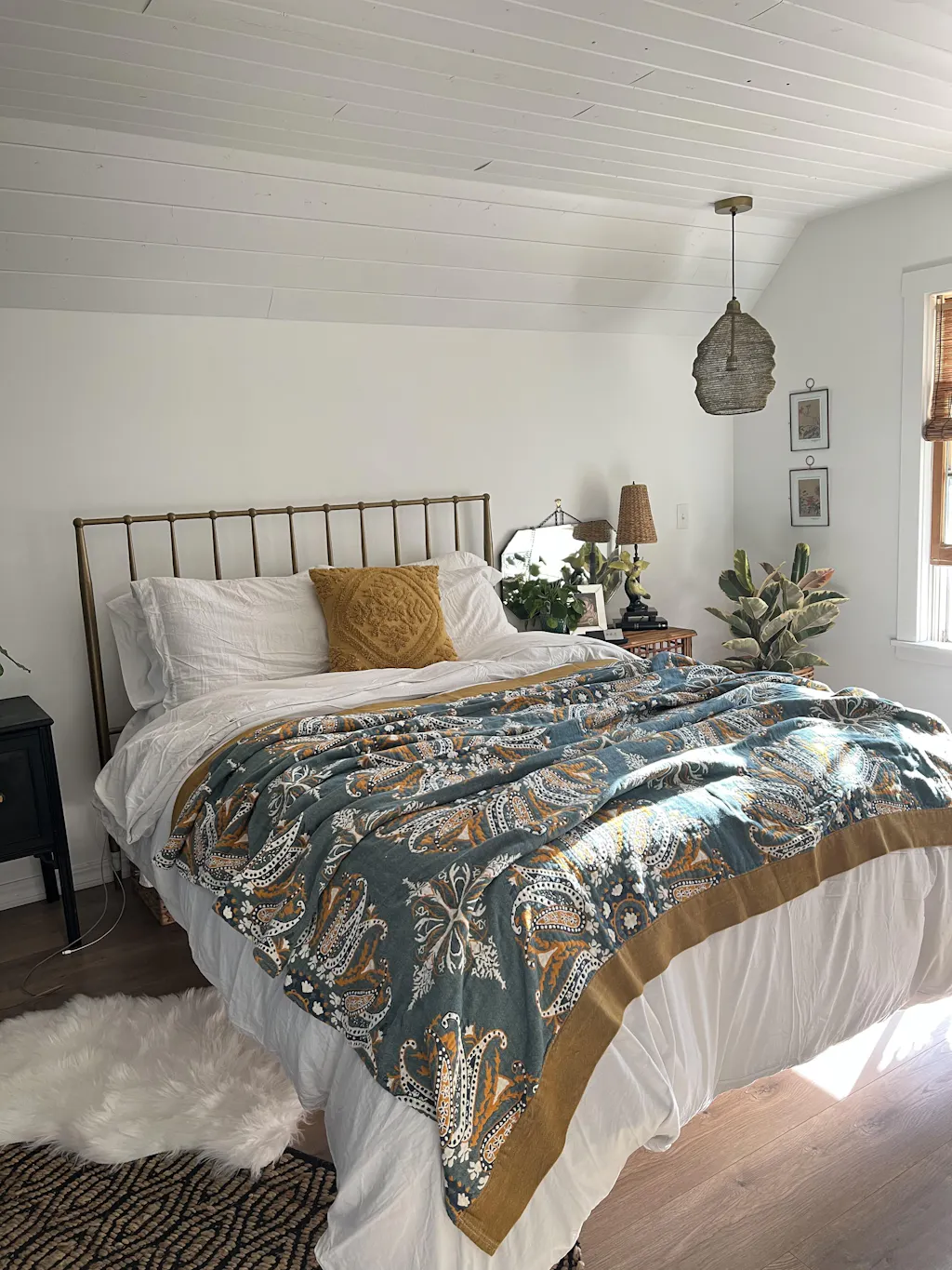 Made from buttery-soft organic cotton, our summer quilt is super soft, breathable and cuddly. It not only makes for a great blanket to snuggle up with, but also is a special decorative piece for your bedroom. The featured boho design transforms your bed into a restful retreat. Due to the unique dyeing process, the quilt you receive will vary slightly in color from what's pictured here.