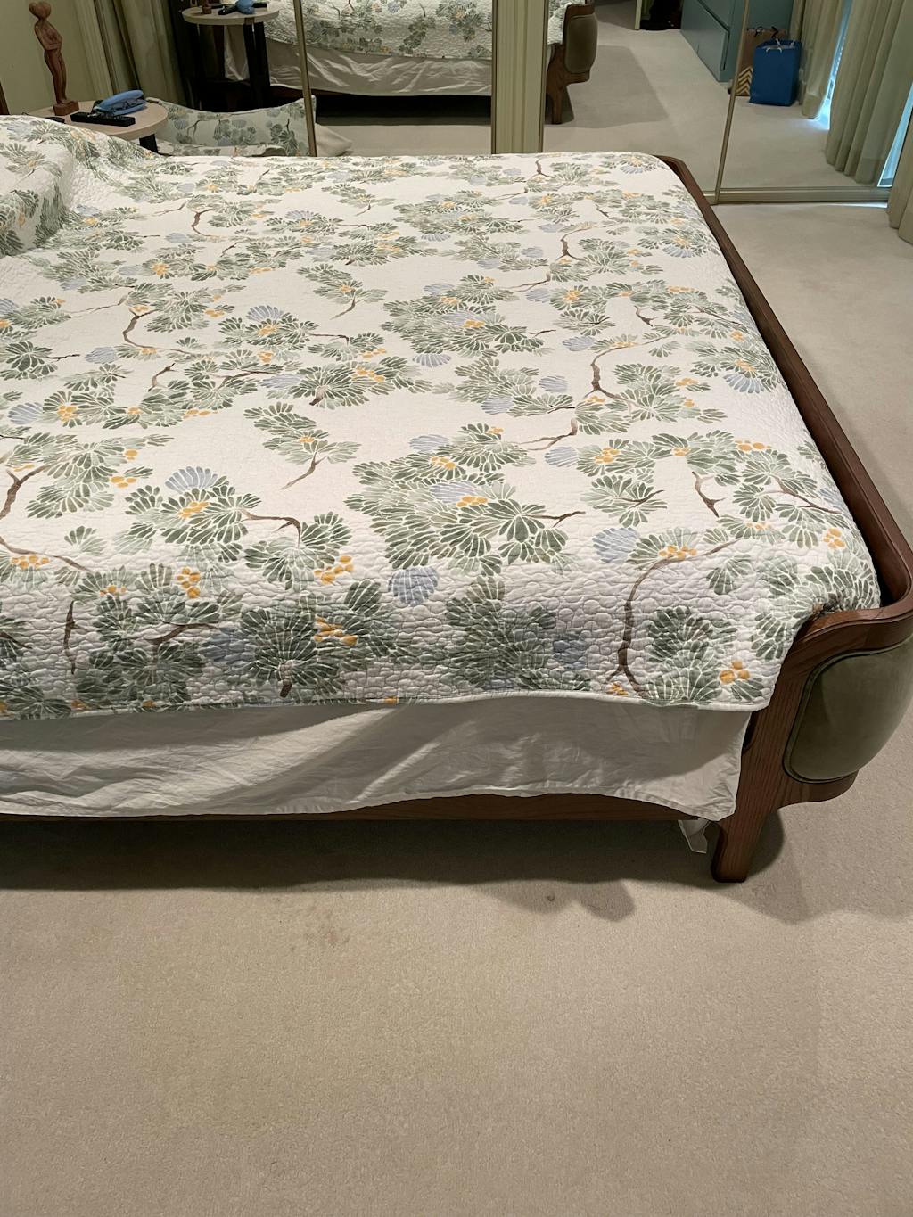 The colors are beautiful and the cotton quilt feels good to the touch and is a nice weight for warmer weather months. However, the King sized feels a bit too small, particularly width wise, and doesn’t provide enough coverage to be an attractive bed covering, as it doesn’t drape over the sides much and leaves the top sheet showing.