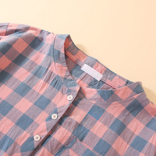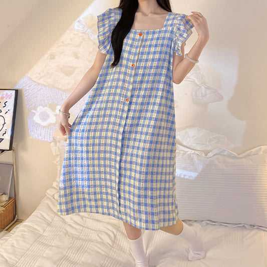 Ownkoti Plaid Cotton Gauze Nightgown with 3-Button