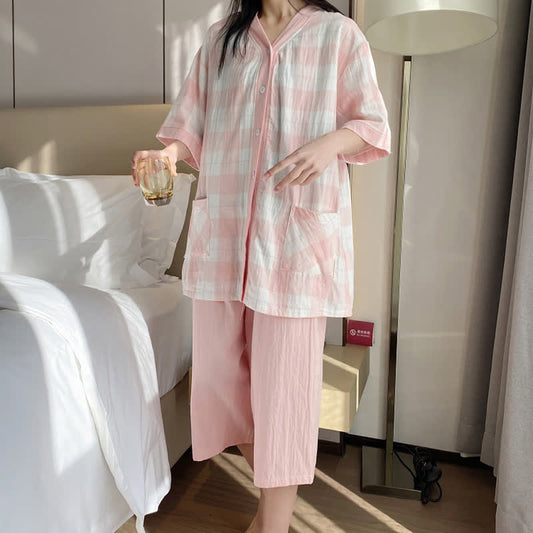 Ownkoti Plaid Cotton Gauze Button-Front Pajama Set