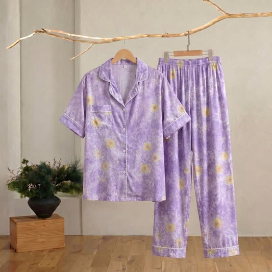 Ownkoti Artistic Style Sunflower Silky Loungewear Set