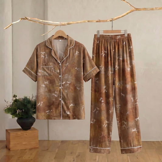 Ownkoti Artistic Style Floral Silky Loungewear Set
