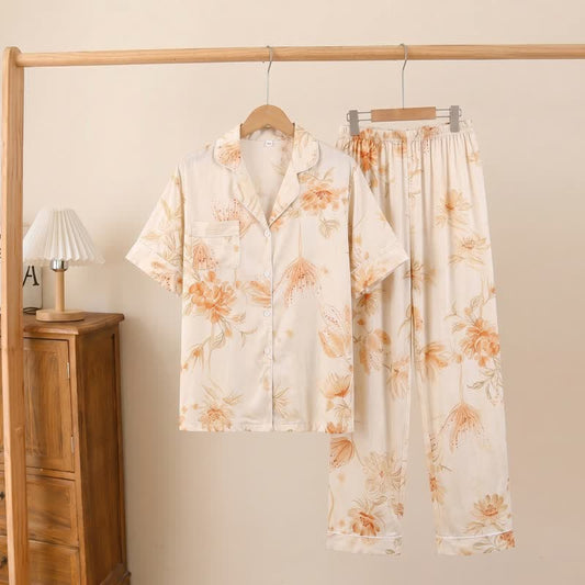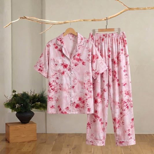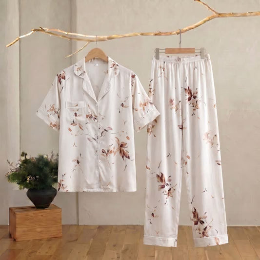 Ownkoti Elegant Blooming Floral Silky Loungewear Set