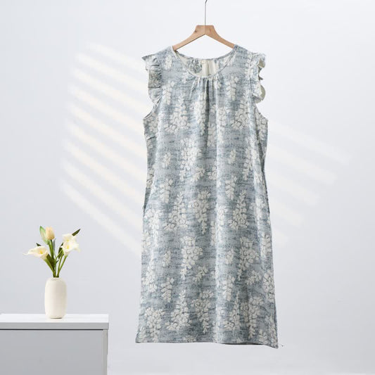 Ownkoti Elegant Botanical Pure Cotton Sleeveless Nightgown