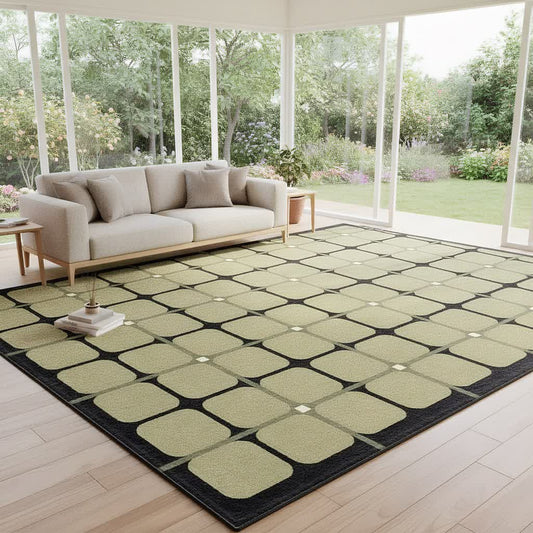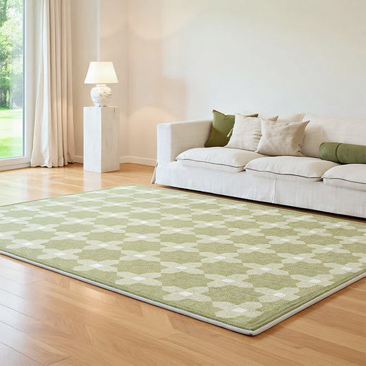 Ownkoti Green Checkered Pattern Area Rug