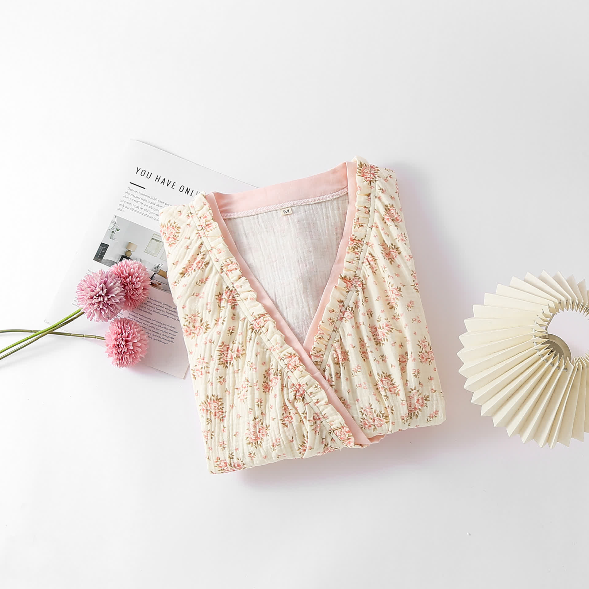A dreamy and breathable nightdress made from ultra-soft double gauze cotton, featuring a delicate all-over floral print. The long sleeves and loose silhouette offer cozy comfort, while the lightweight fabric ensures year-round ease. Perfect for warm nights or layering in cooler weather.