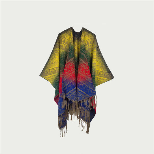Ownkoti Gradient Vintage Geometric Fringe Shawl Blanket