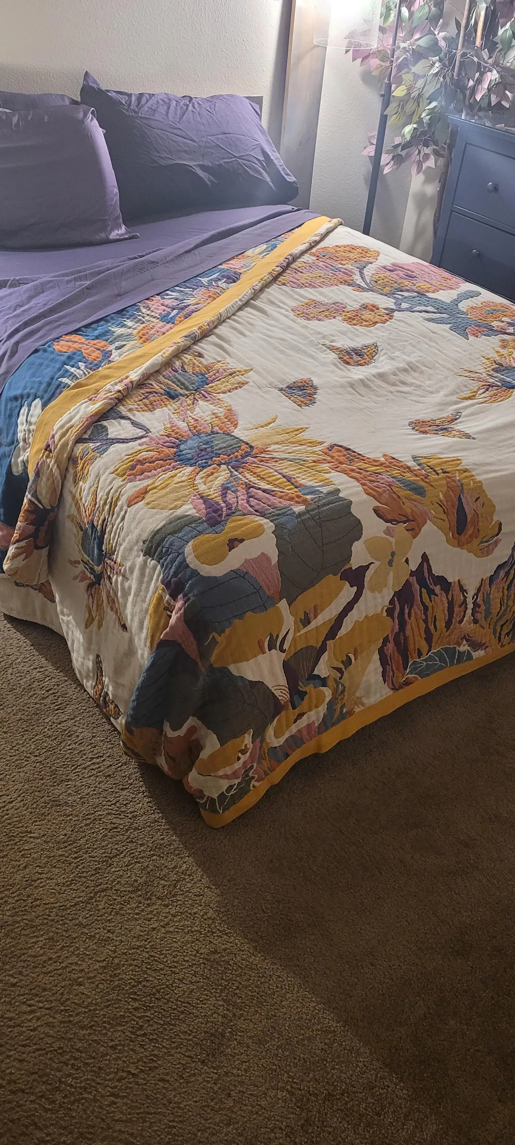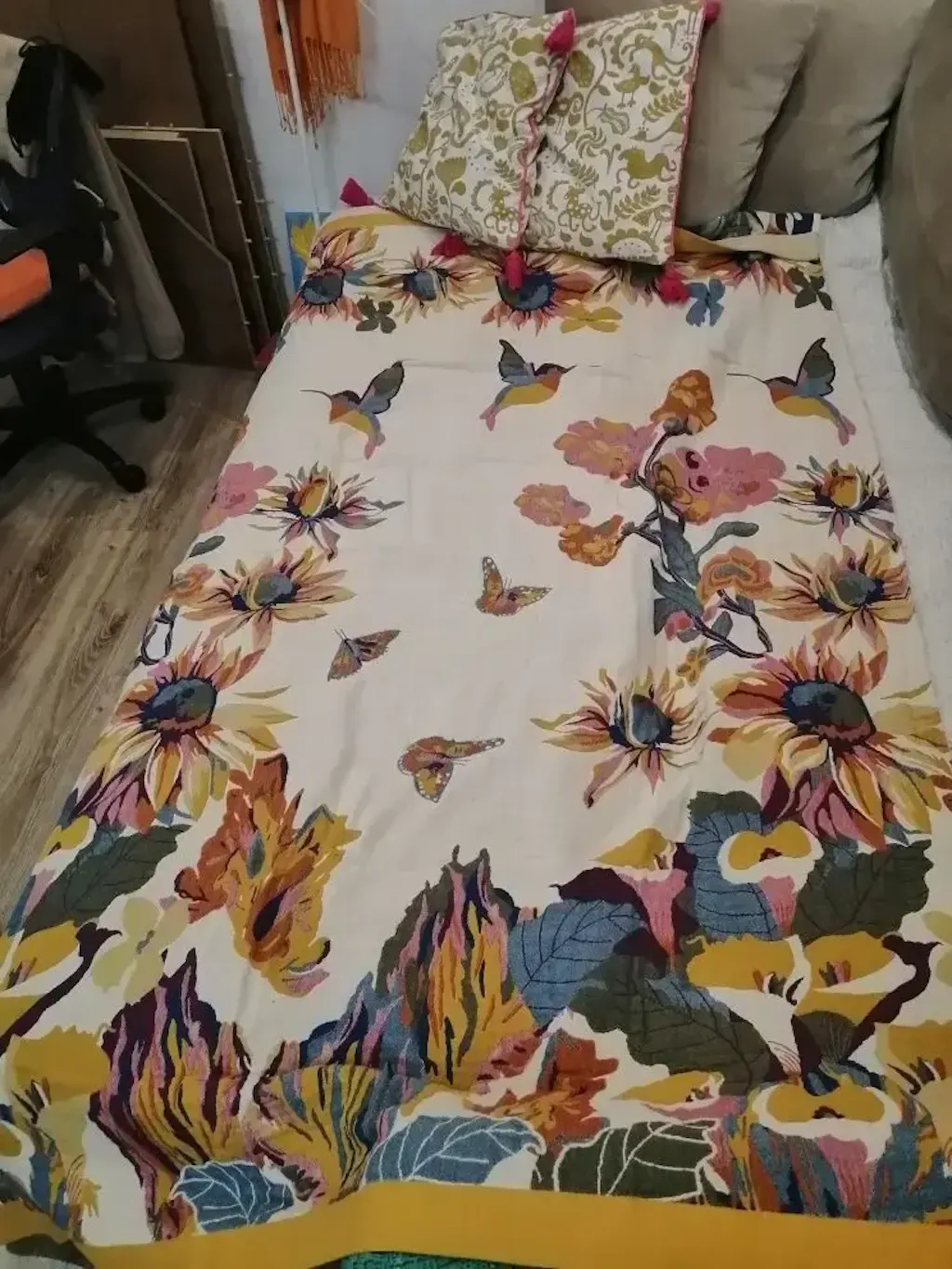 Ownkoti Butterfly Flower Print Cotton Reversible Quilt