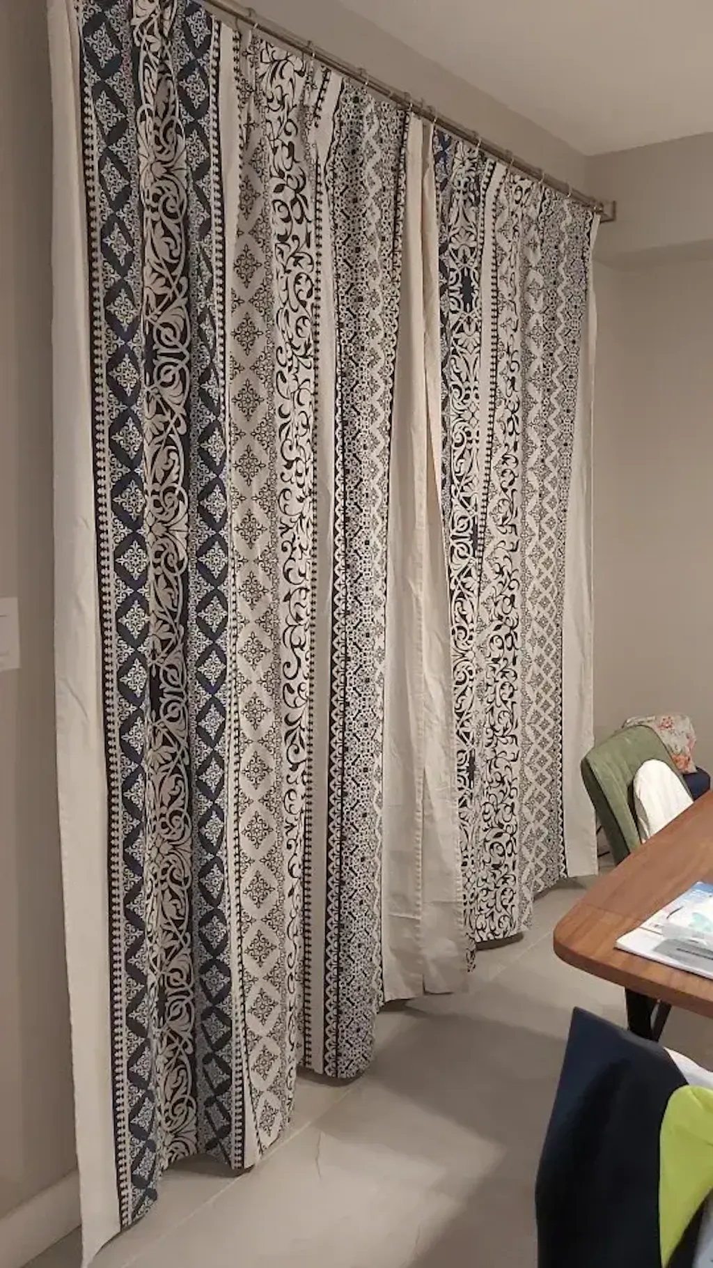 I love the fabric and it looks great but on one of the panels (I ordered 4), the tape header into which the hooks are supposed to go, was sewn in upside down. It cost me $40 to have it put right.