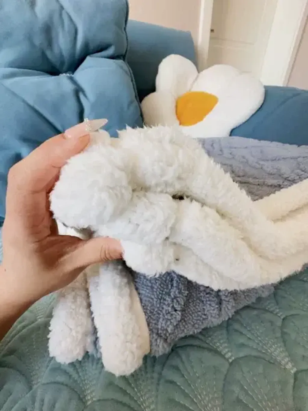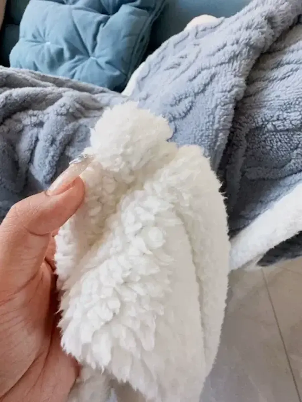 My wife is bedbound, and we put your shawl/blanket on her every day when we take her out in her wheelchair. It keeps her warm, and it stays on her when regular blankets get pushed off. It has been wonderful.