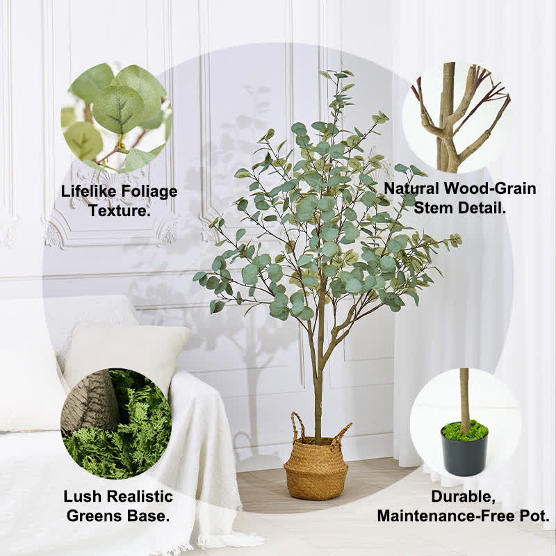 Ownkoti Faux Eucalyptus Tree in Pot with Realistic Leaves