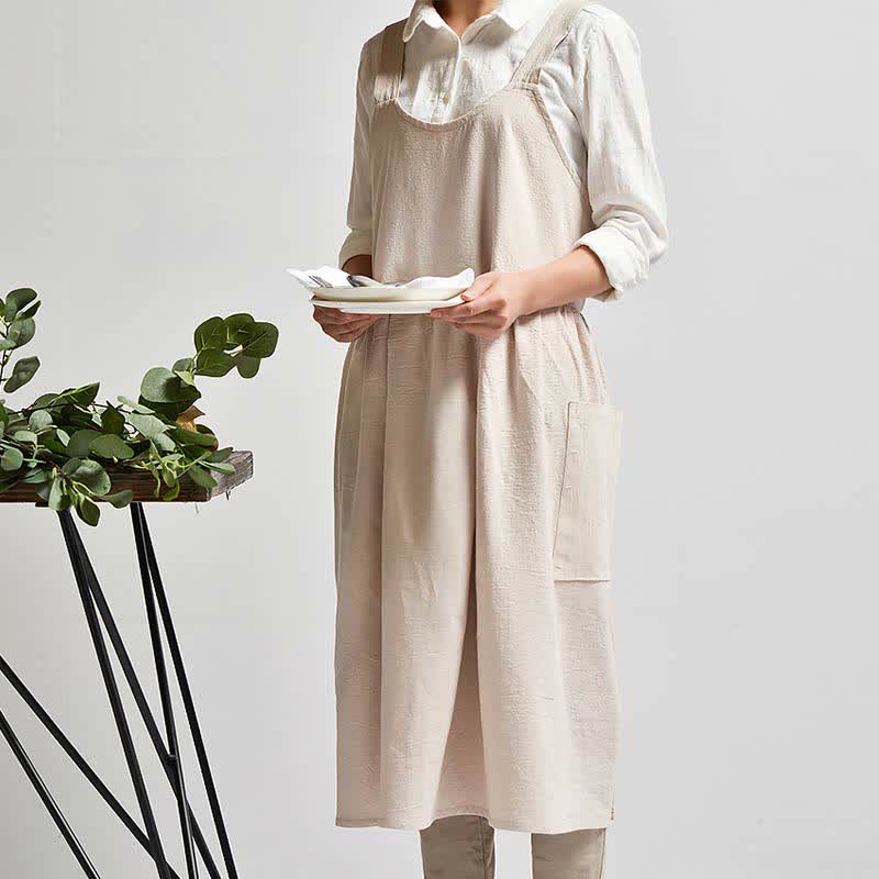Simple and stylish design style. Cross-back design makes this apron no longer slip from the shoulder. The fabric of this apron is comfortable and skin-friendly, breathable. It is easy to put on and take off, convenient and comfortable. Suitable for the kitchen, coffee shop, bar, unique restaurant.